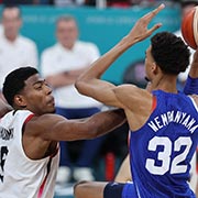 北京时间7月31日,巴黎奥运男篮小组赛B组,法国队加时94-90击败日本队,取得小组赛两连胜。文班亚马全场13中6,三分5中3得到18分11篮板6助攻2抢断2盖帽的全面表现。他上下半场表现判若两人,上半场4中4情况下,下半场投篮准星全无,6次出手全部投丢,并且错失关键反超三分,险些成为球队罪人。不过他在加时赛上将功补过,个人独得8分为球队攻防两端建功,拒绝日本队爆冷,保住法国东道主的颜面。 本场比赛的一大看点,文班亚马作为本届男篮参赛选手最高的球员(官方身高2米22),恰好碰上了最矮的参赛选手富坚勇树(官方身高1米67),两人站在一起形成了极其鲜明的对比,仿佛文班亚马化身巨人闯进了异次元。然而,文班亚马并没有利用这巨大的身高优势,在日本队的禁区内翻江倒海,反而让球队一度陷入绝境,绝对身高反